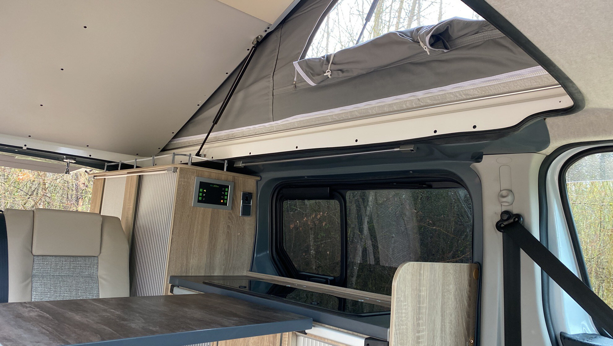Le toit relevable permet de se mettre debout dans le véhicule en stationnement